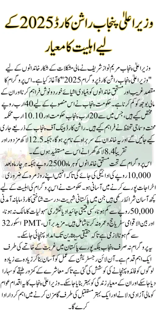 Here is a clear overview of the CM Punjab Rashan Card Program for 2025. By reading the points given below, you can understand the scope and details of this important initiative well:
